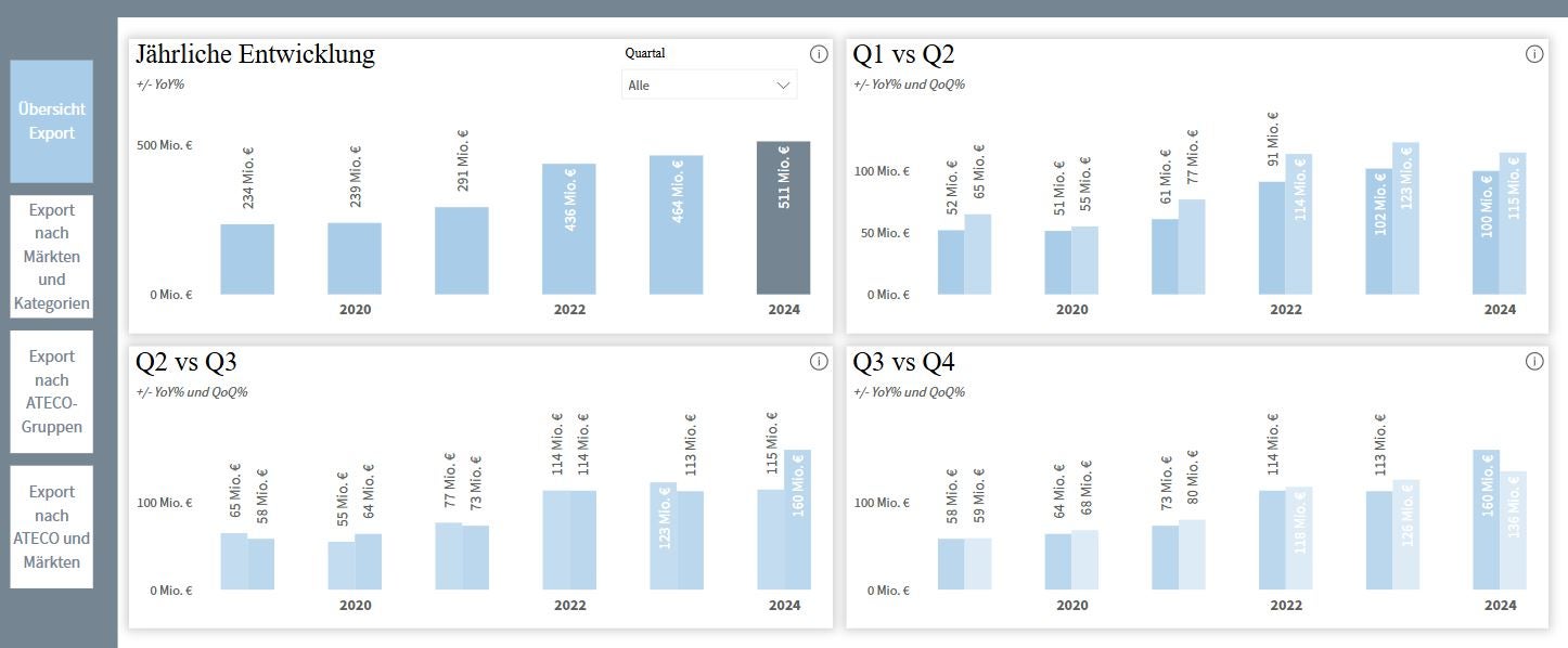 - Übersicht der Daten zum Export in die USA nach Quartalen. (Grafik: Dashboard IDM basierend auf Daten des ISTAT) » [IMG 79 kB]